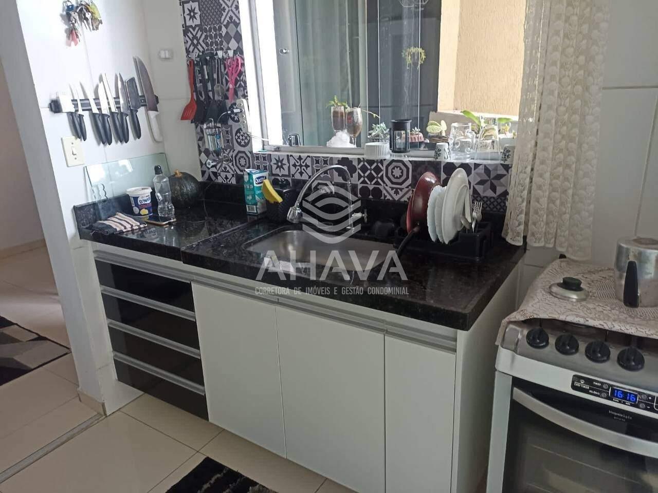 Cozinha com bancada em granito, cuba da pia em inox, armários planjeados e rebaixamento em gesso;