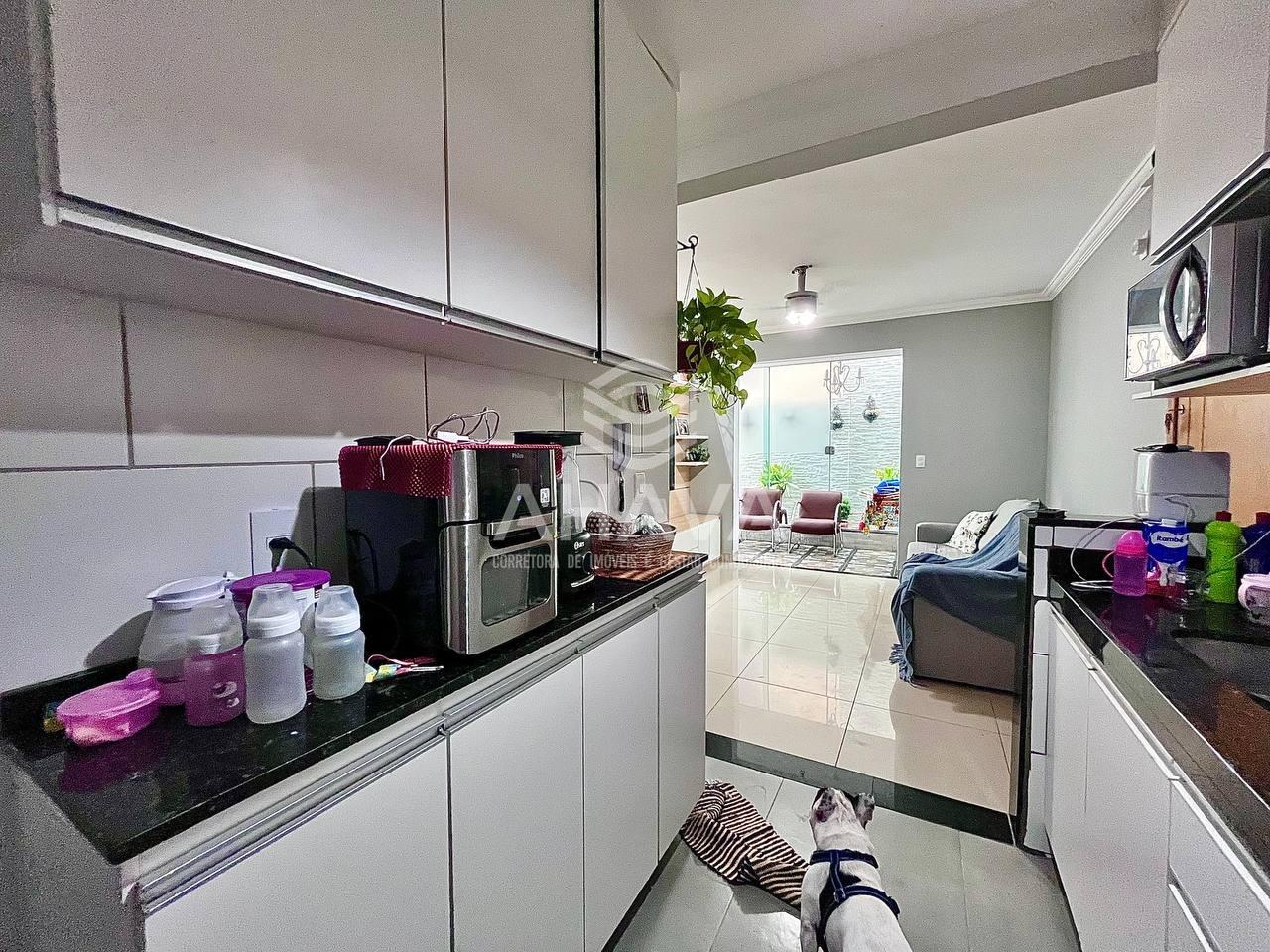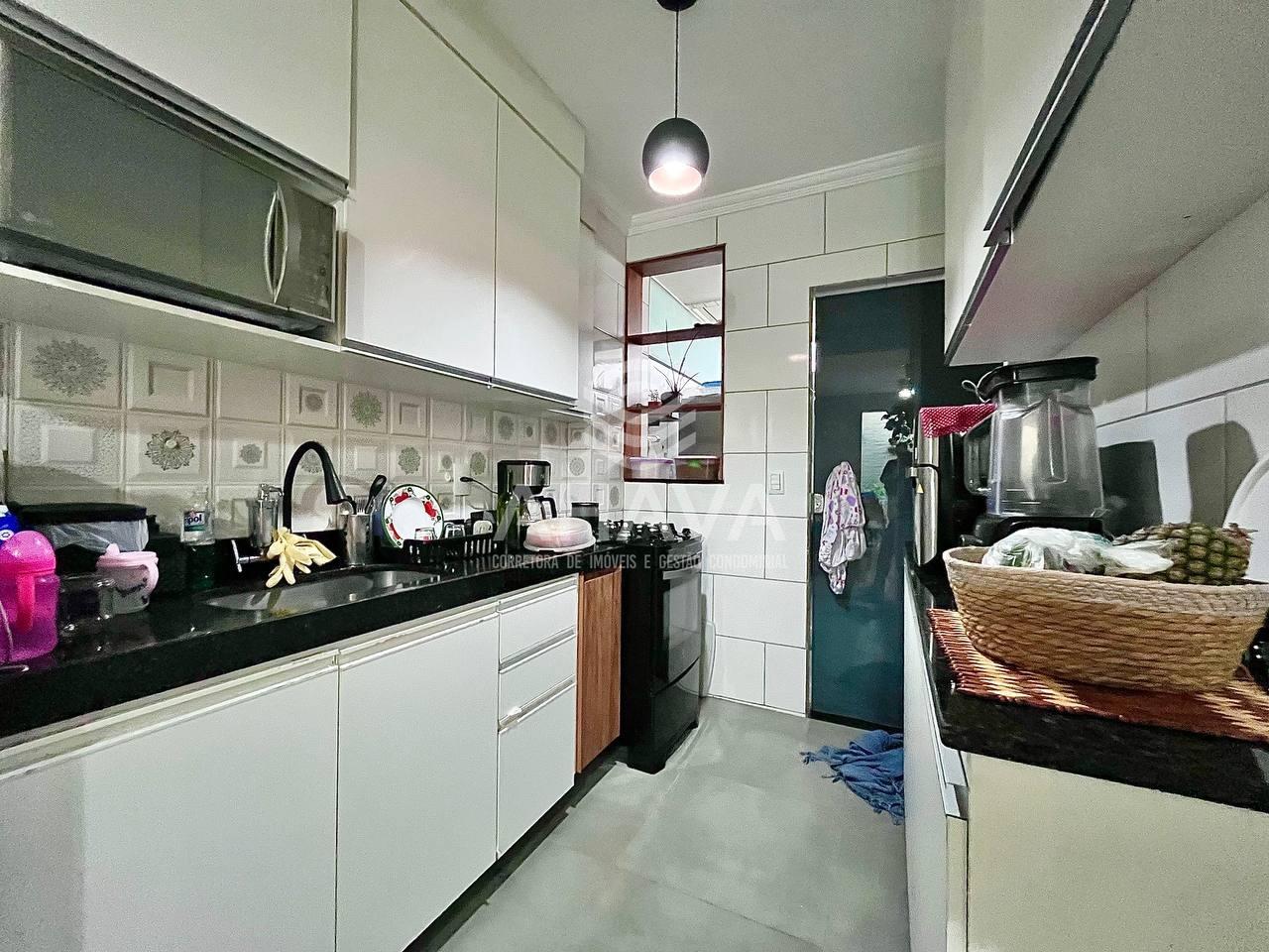 Cozinha com bancada em granito, cuba da pia em inox e armários planejados;