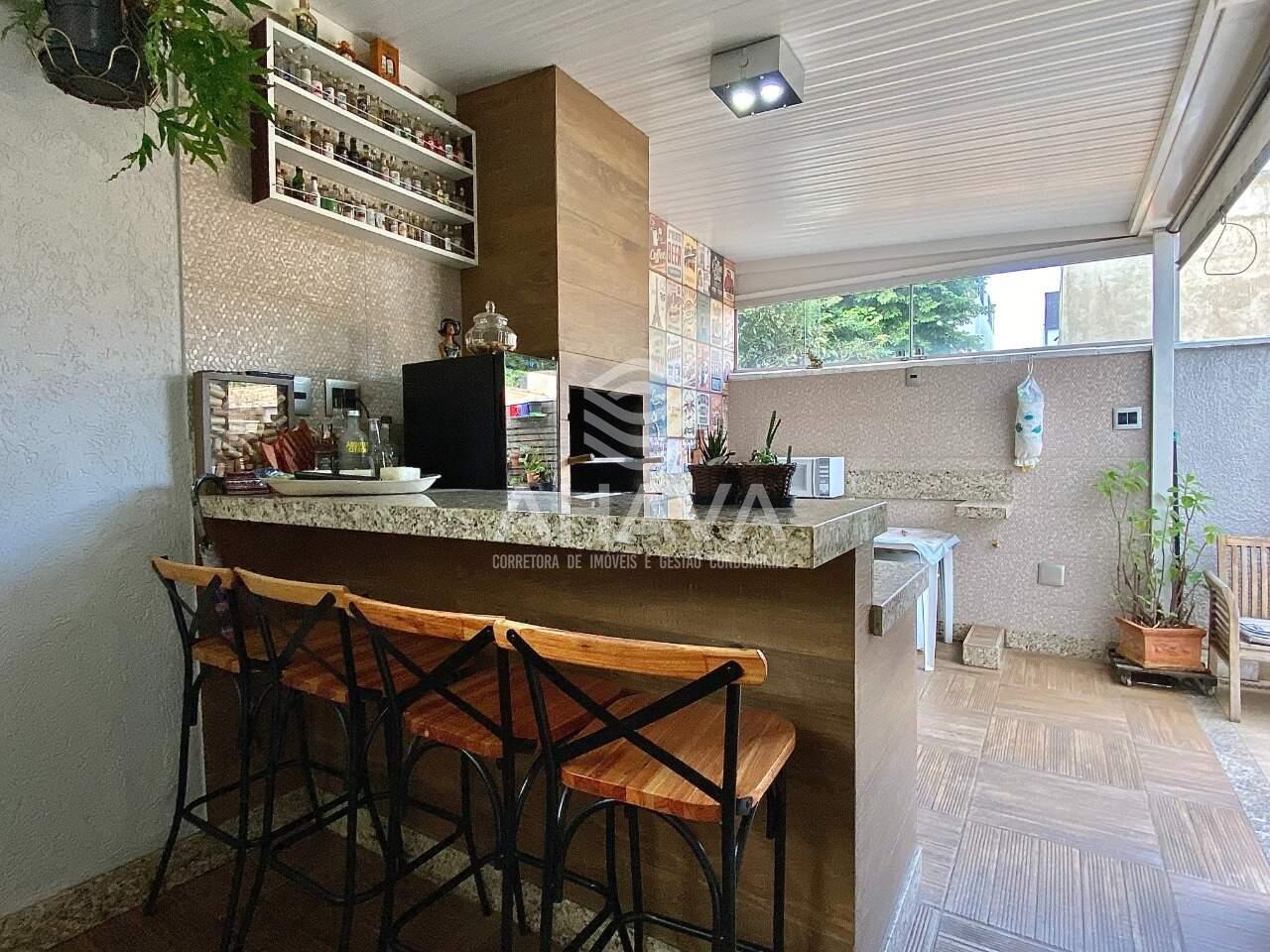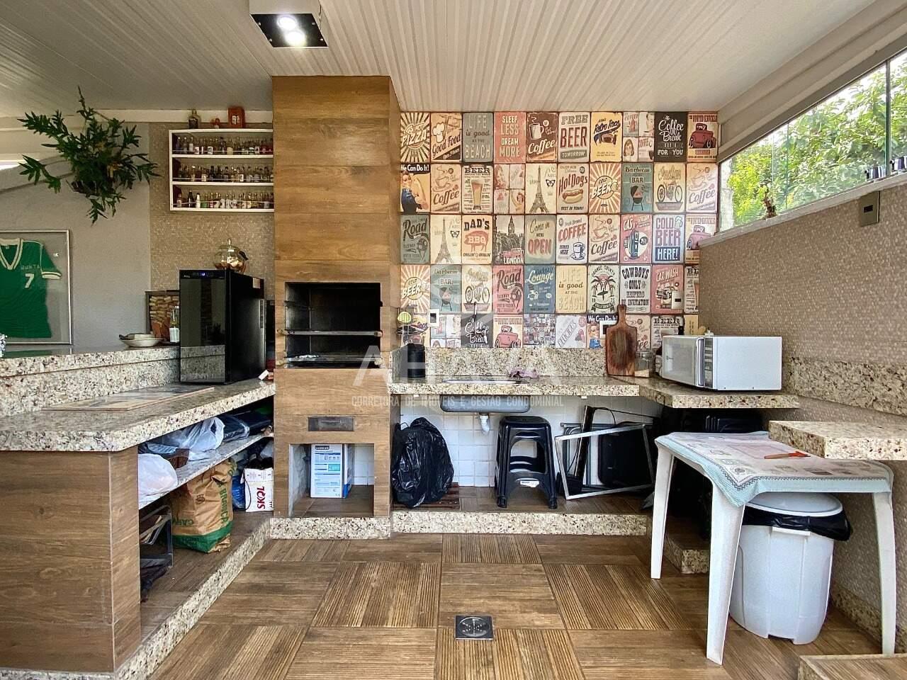 Espaço gourmet com bancada em granito, cuba da pia embutida e churrasqueira;