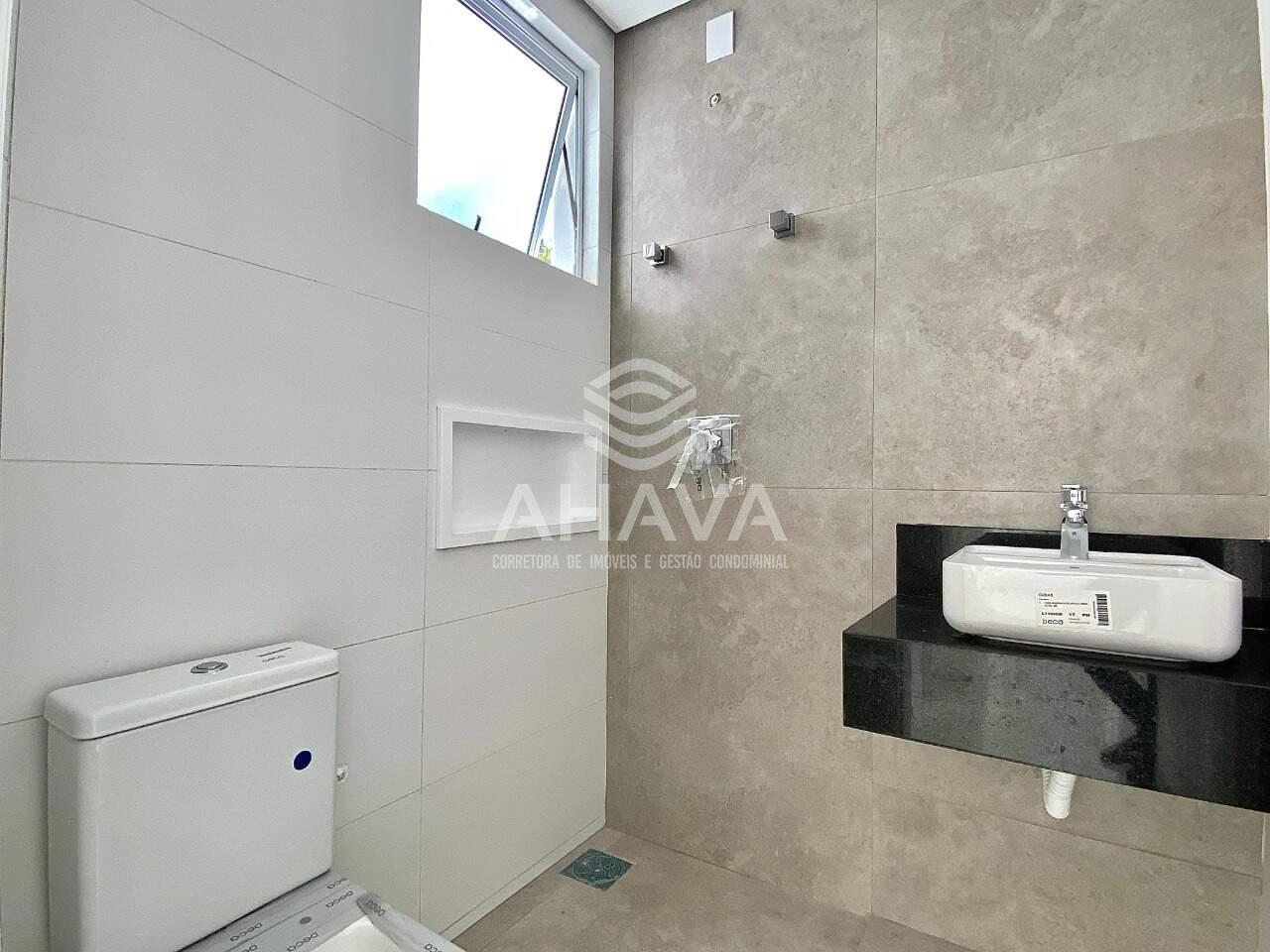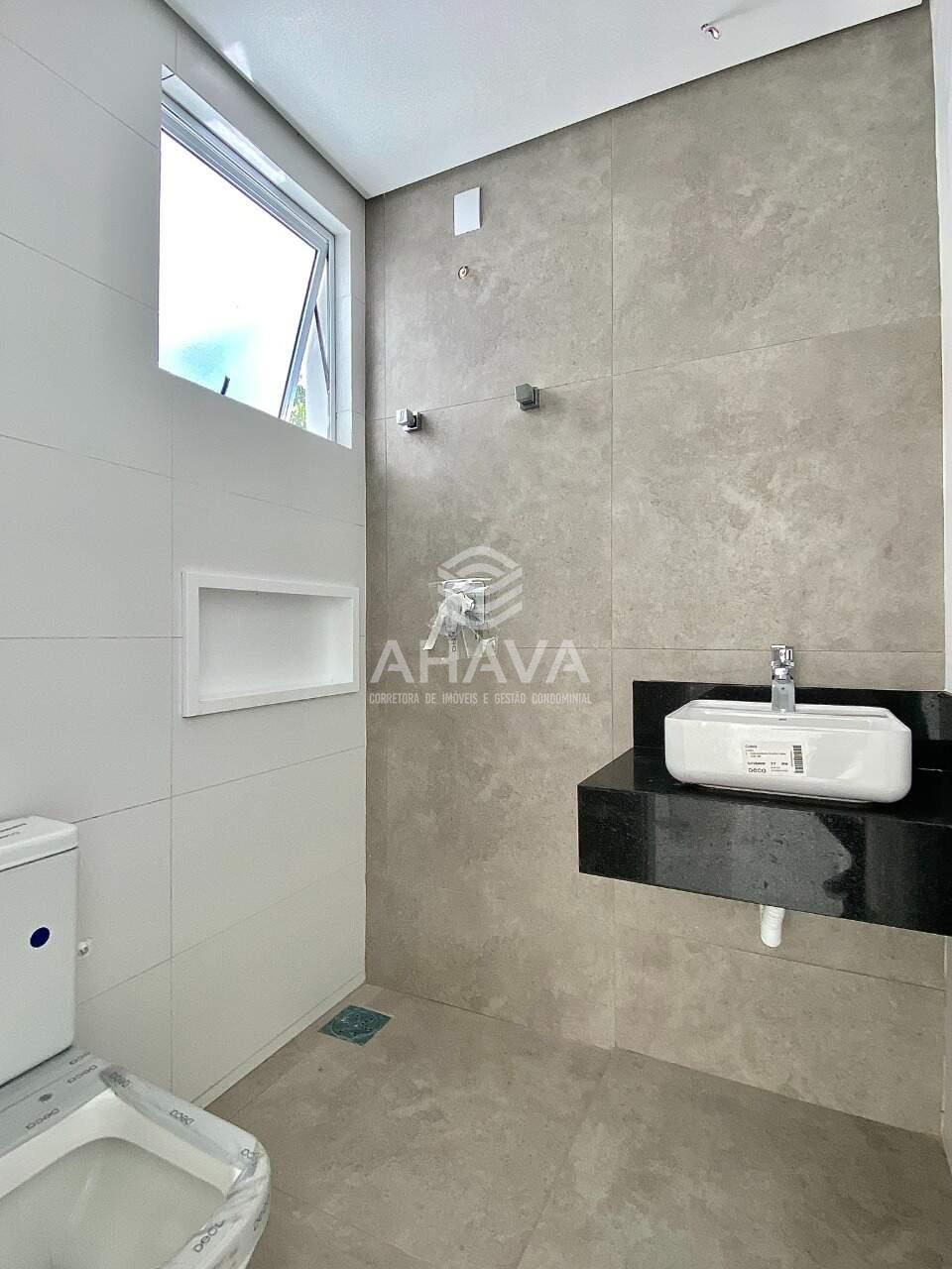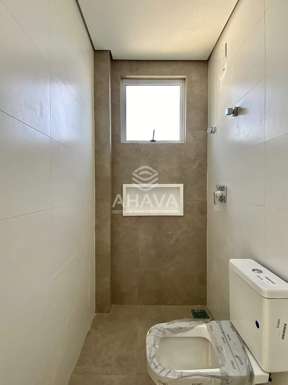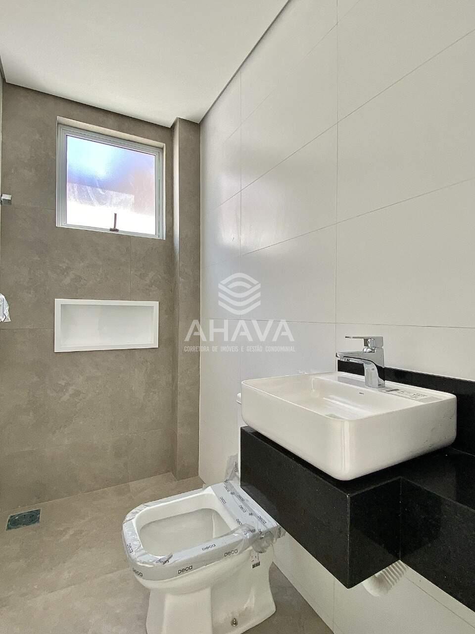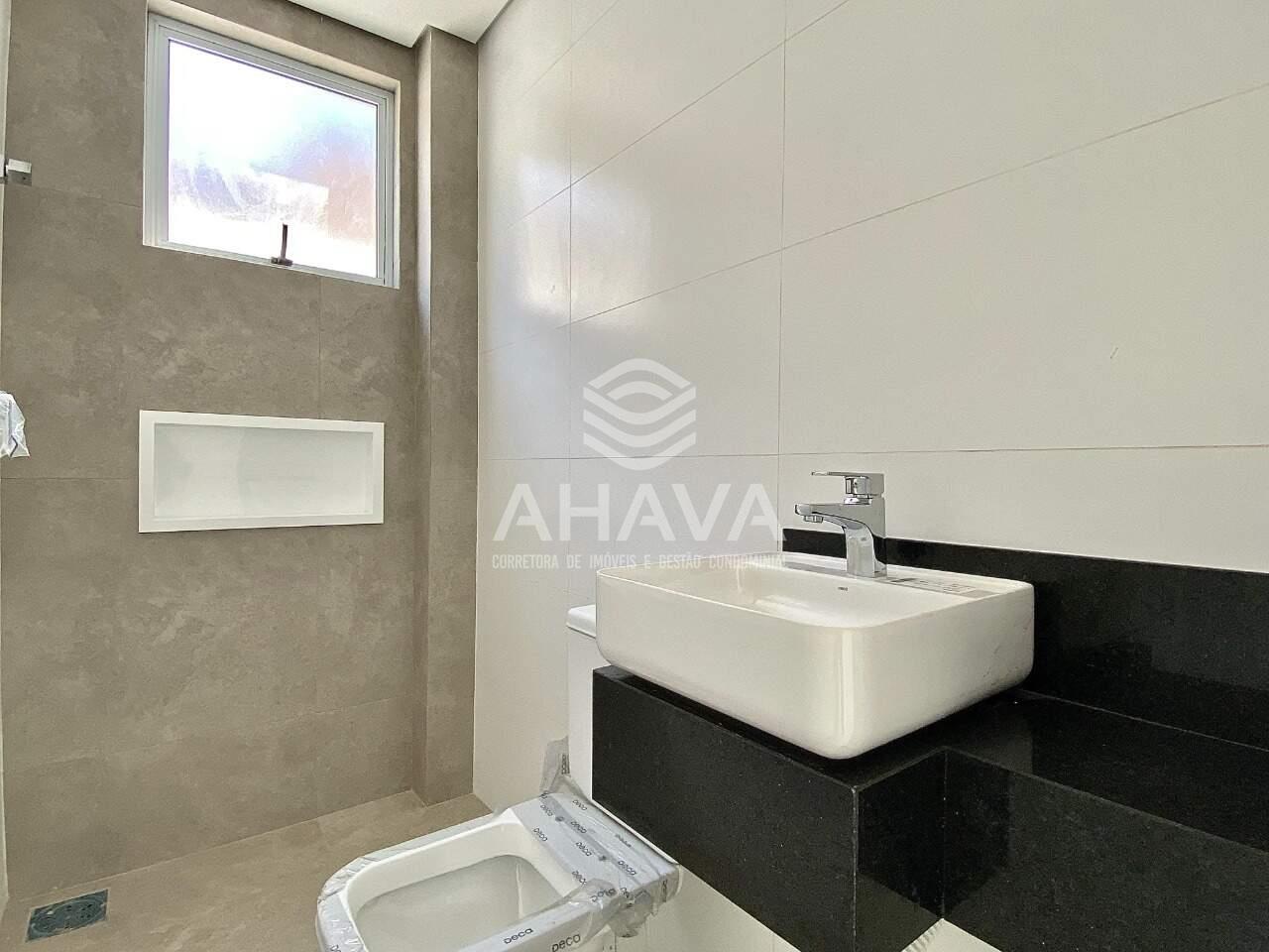 Banheiro das semi-suítes com bancada em granito, cuba da pia em apoio e nicho na área de banho;