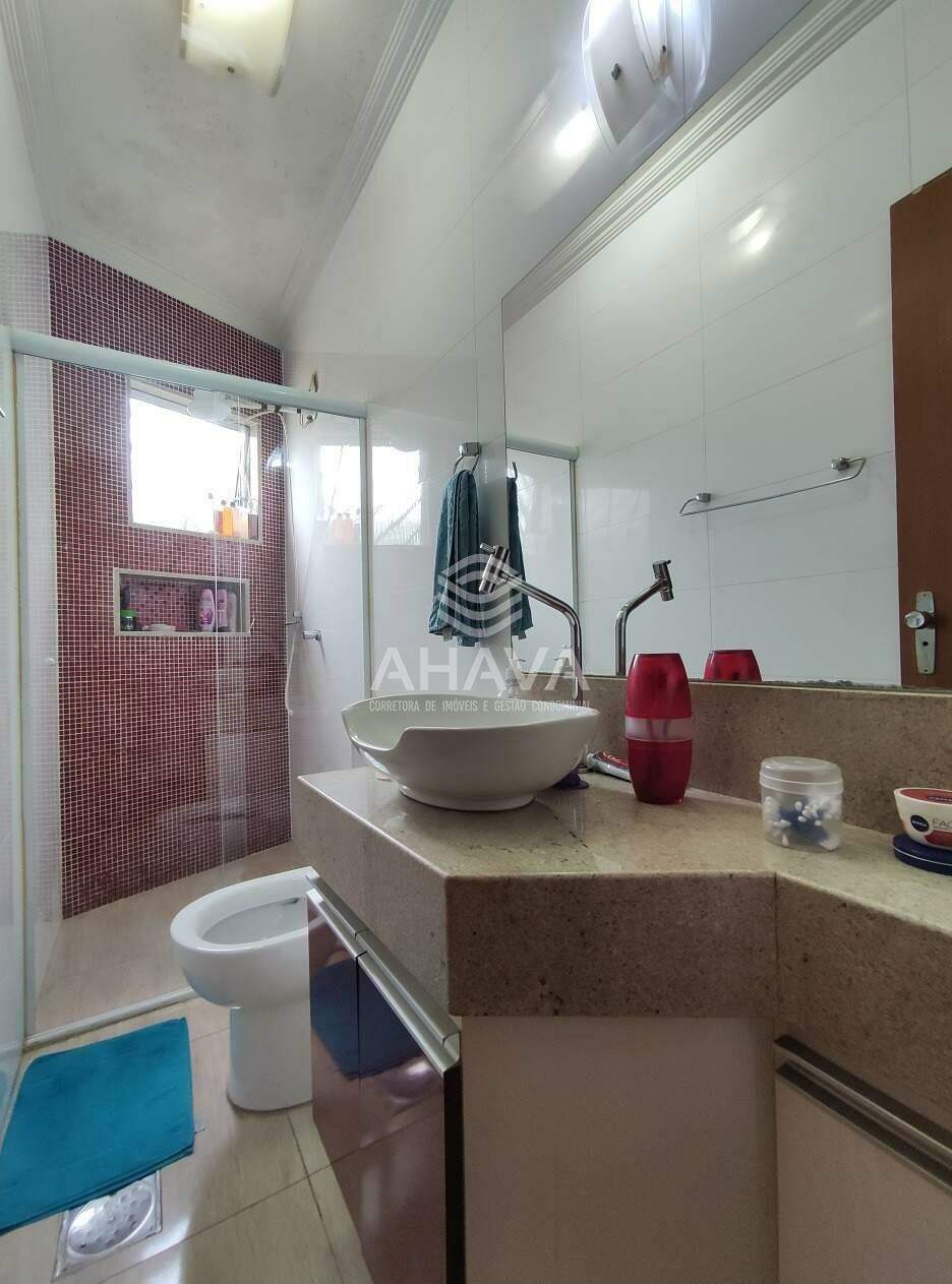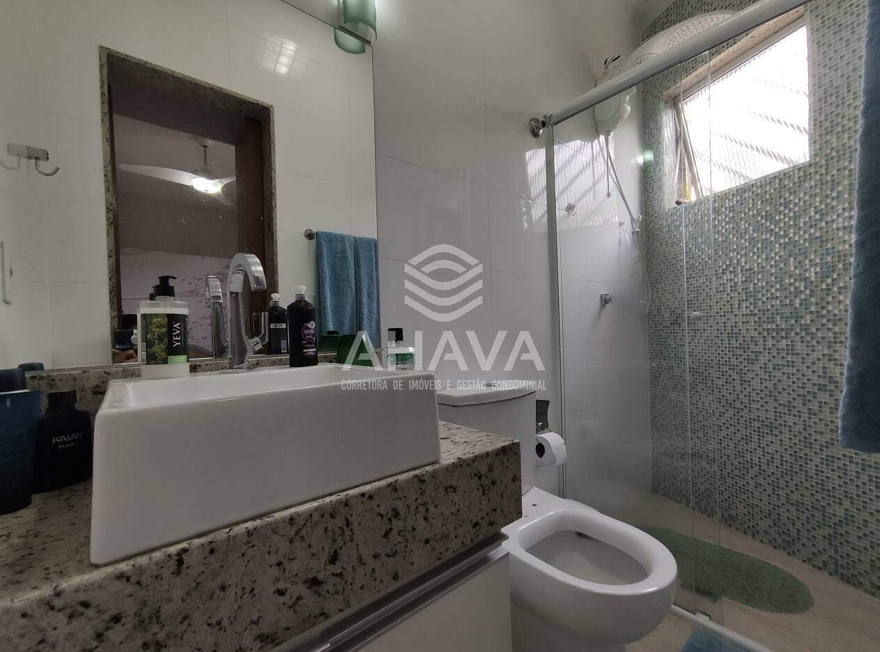 » Banheiro da Suíte com bancada em granito, cuba da pia em apoio, armário planejado, nicho em granito na área de banho e box em blindex 8mm;