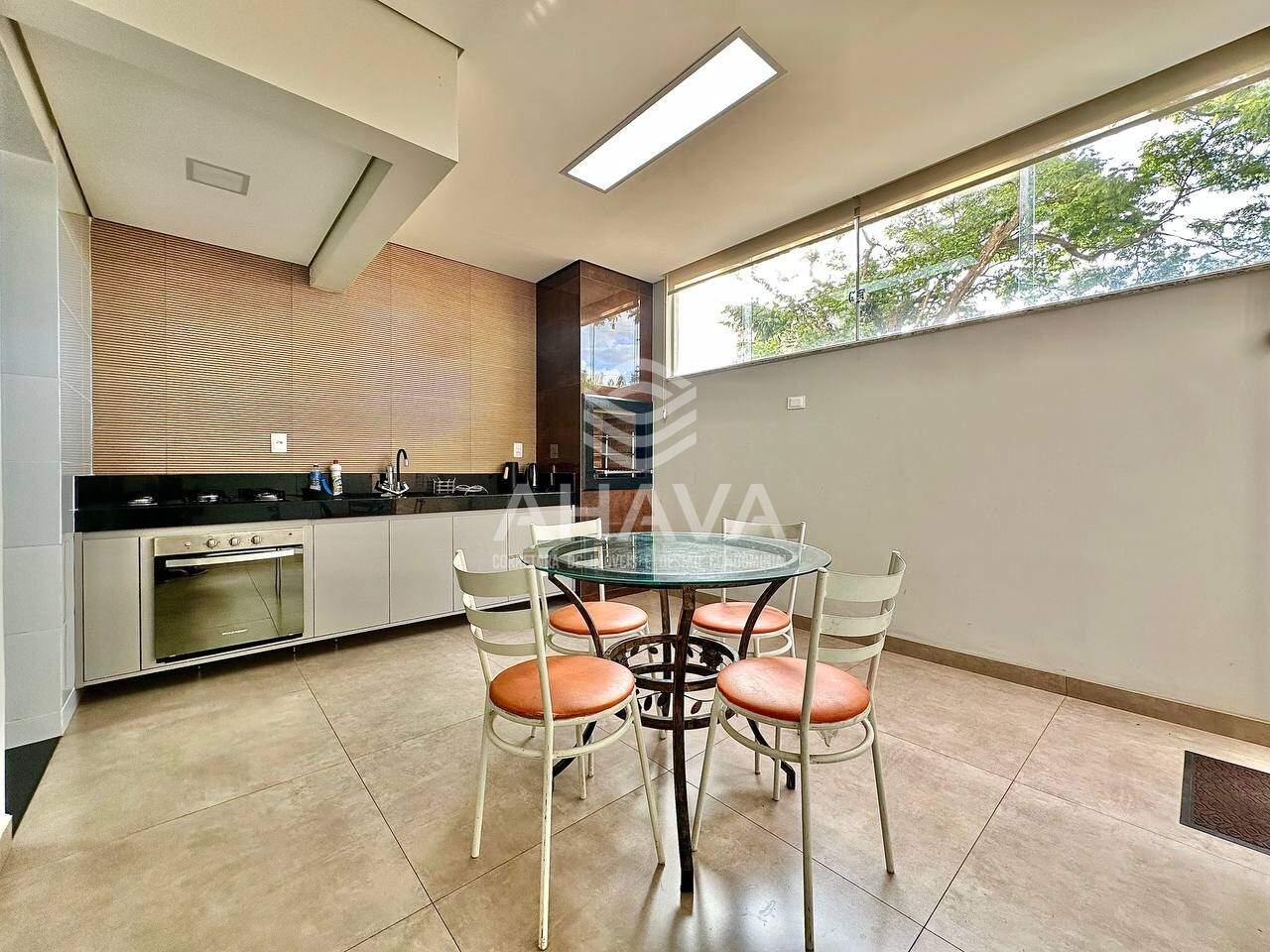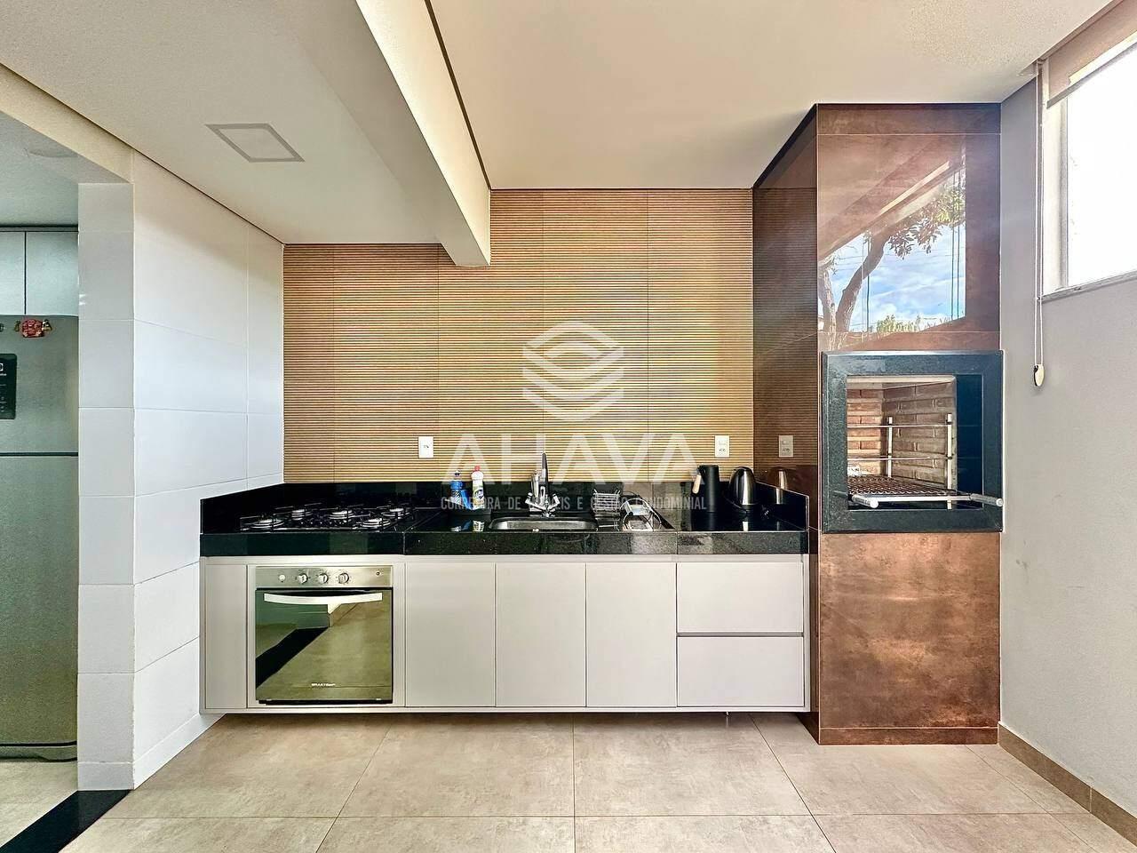 Cozinha Gourmet com bancada da pia em granito, armário planejado e churrasqueira à carvão;
