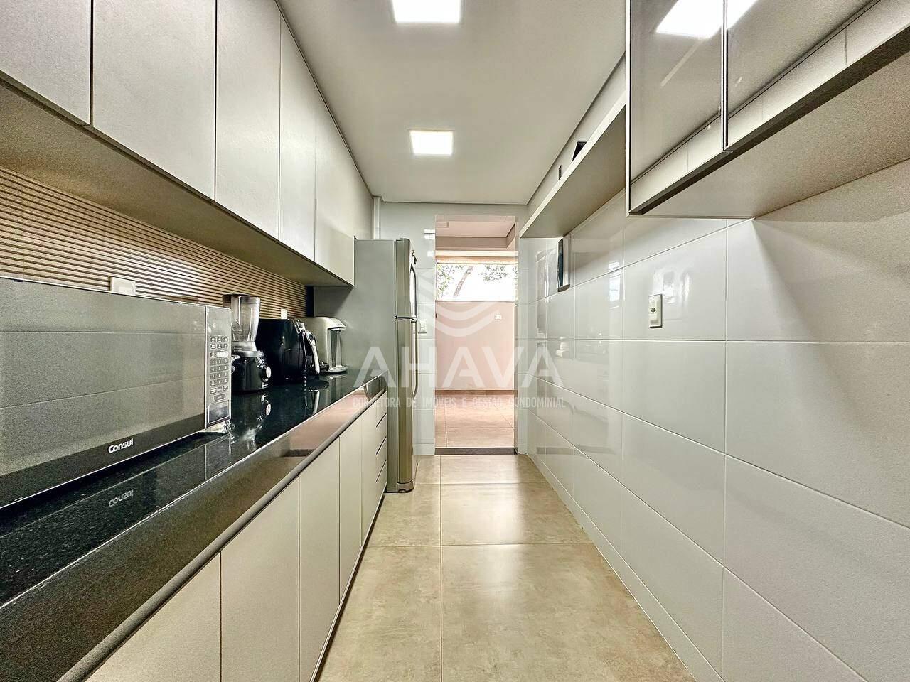 Cozinha com bancada em granito e armários planejados;