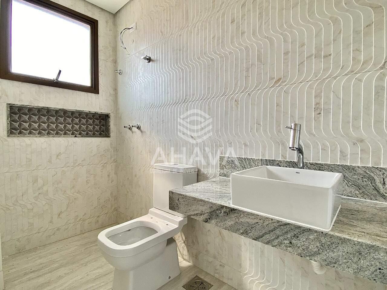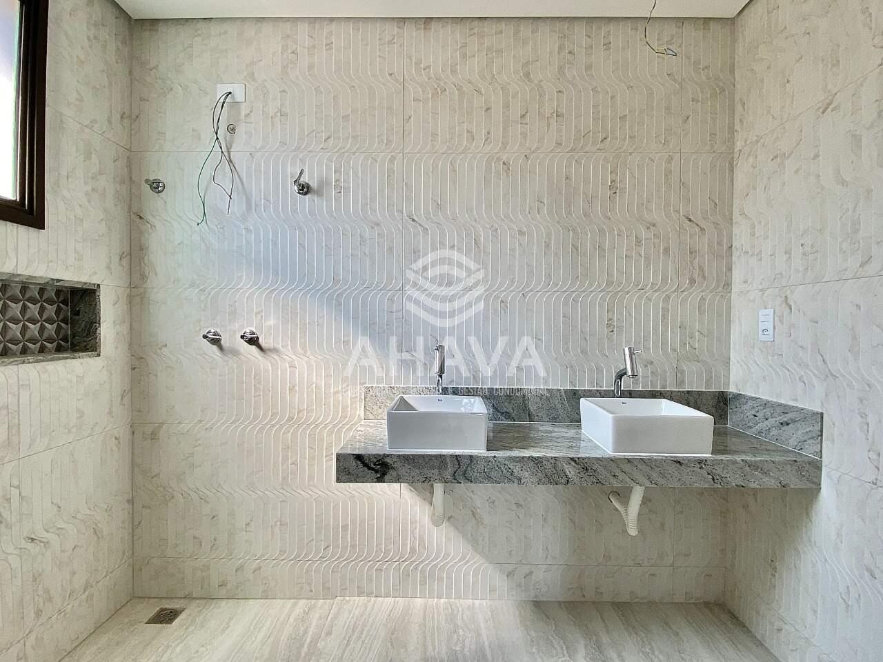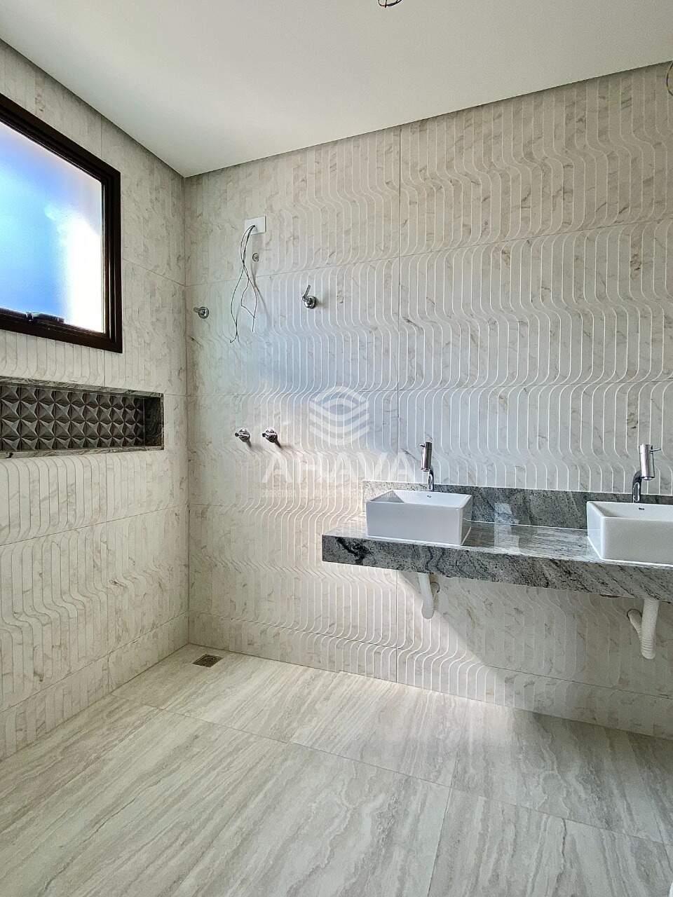 Banheiro da Suíte com bancada, cuba dupla, agua quente na ducha e rebaixamento em gesso;