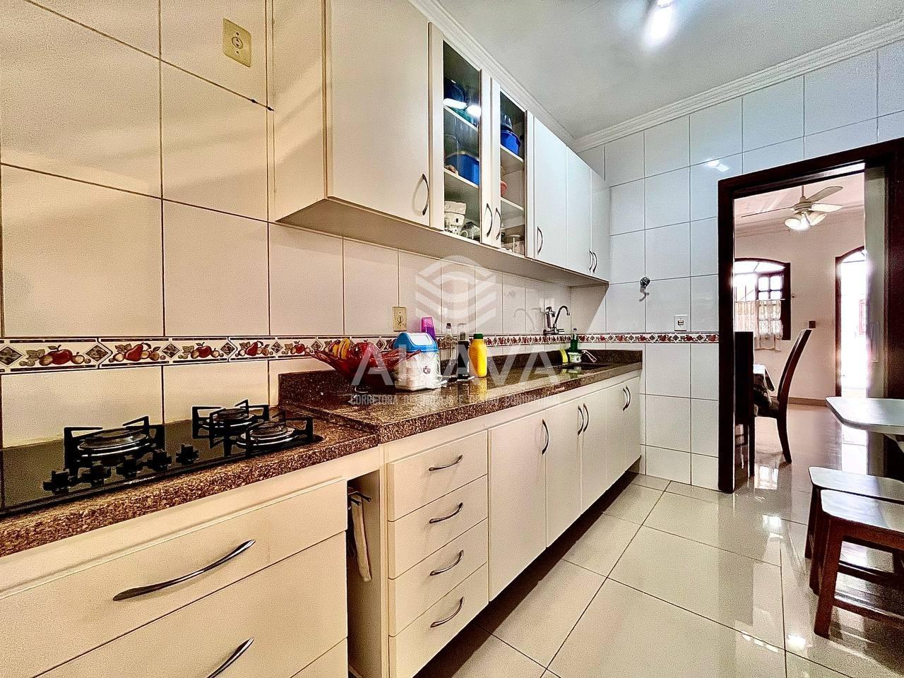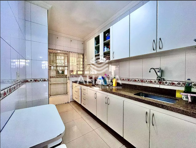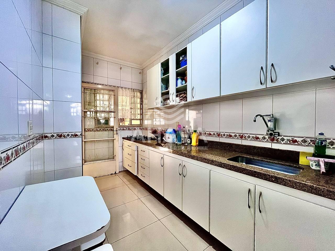 Cozinha com bancada em granito, cuba da pia embutida e armários;