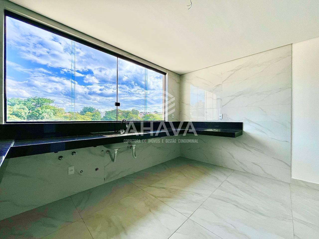 Cozinha com bancada em granito e uma vista incrível;