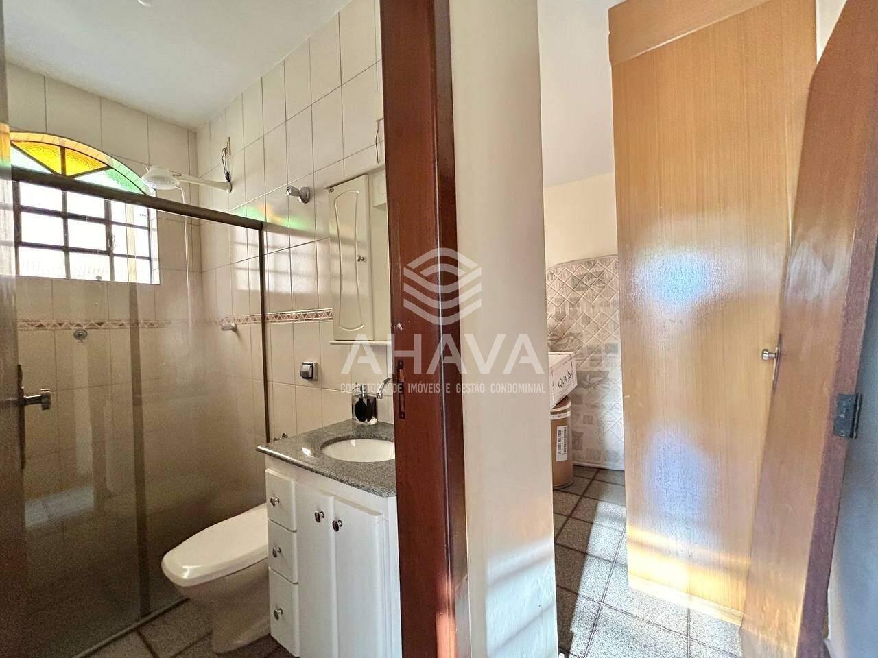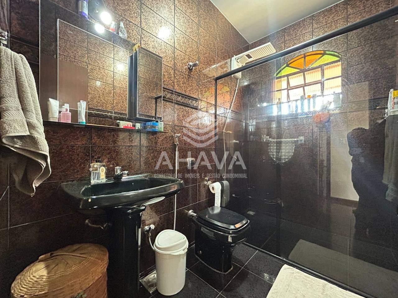 Banheiro da suíte 2 com bancada em granito, cuba da pia embutida e box em blindex 8mm;
