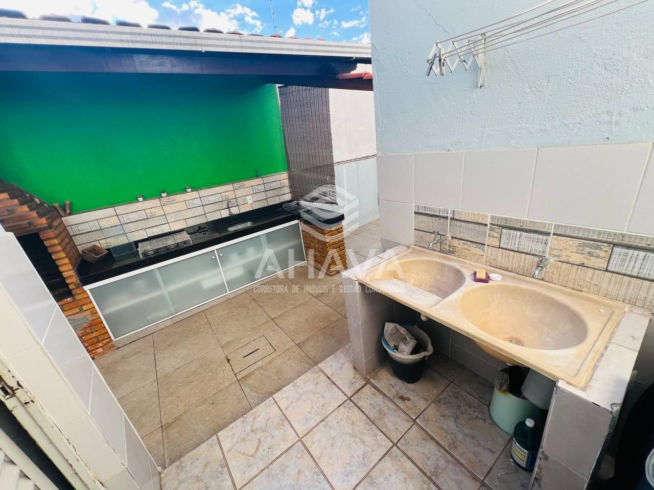 Área Gourmet com bancada em granito, cuba da pia embutida e churrasqueira à carvão;