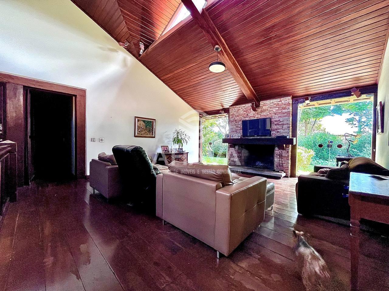 Sala para dois ambientes com lareira e amplo quintal nos fundos;