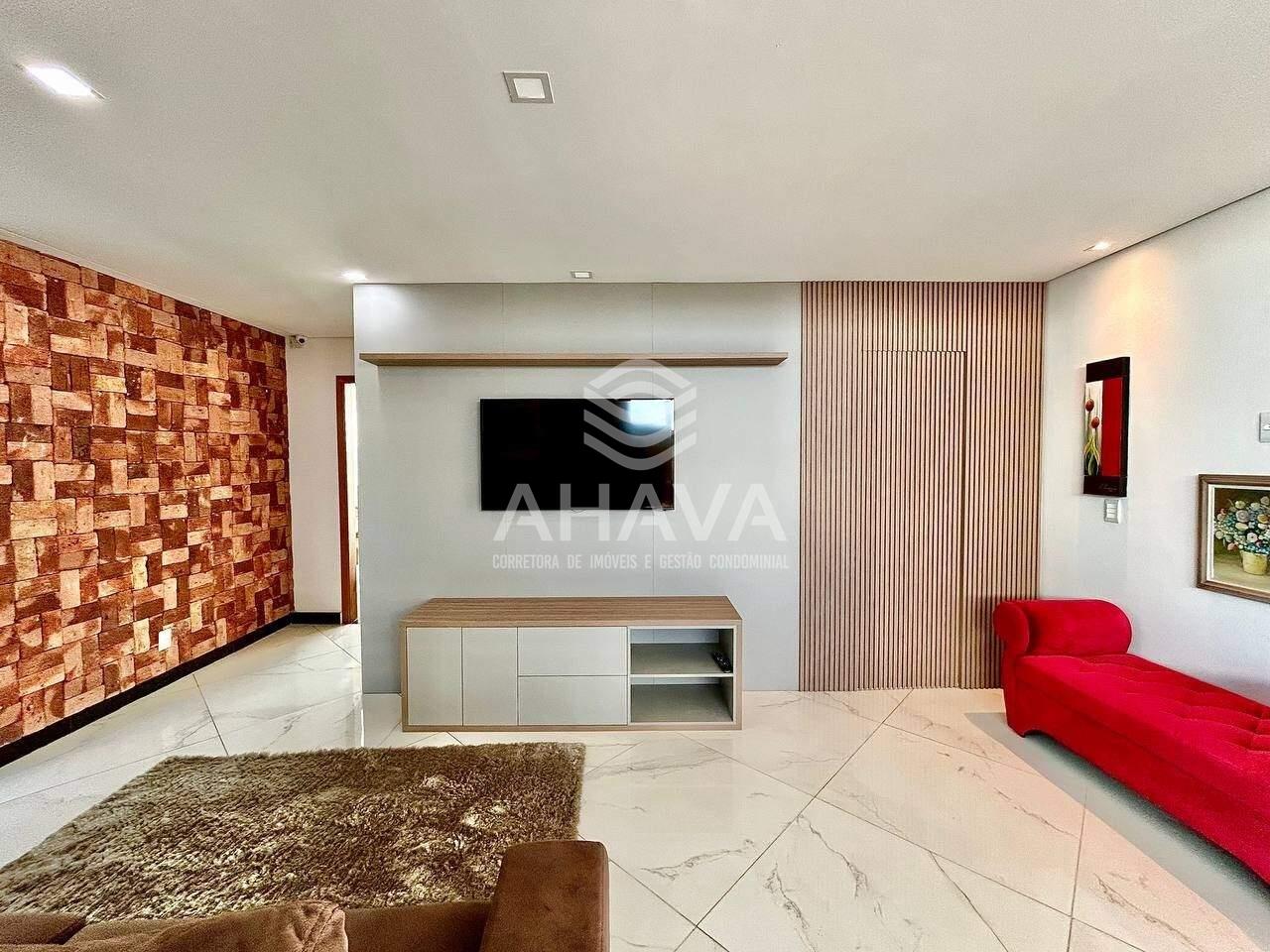 Sala de televisão com painel;