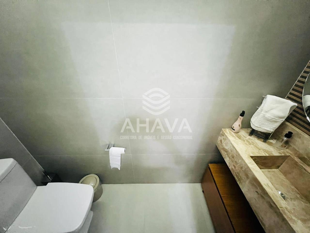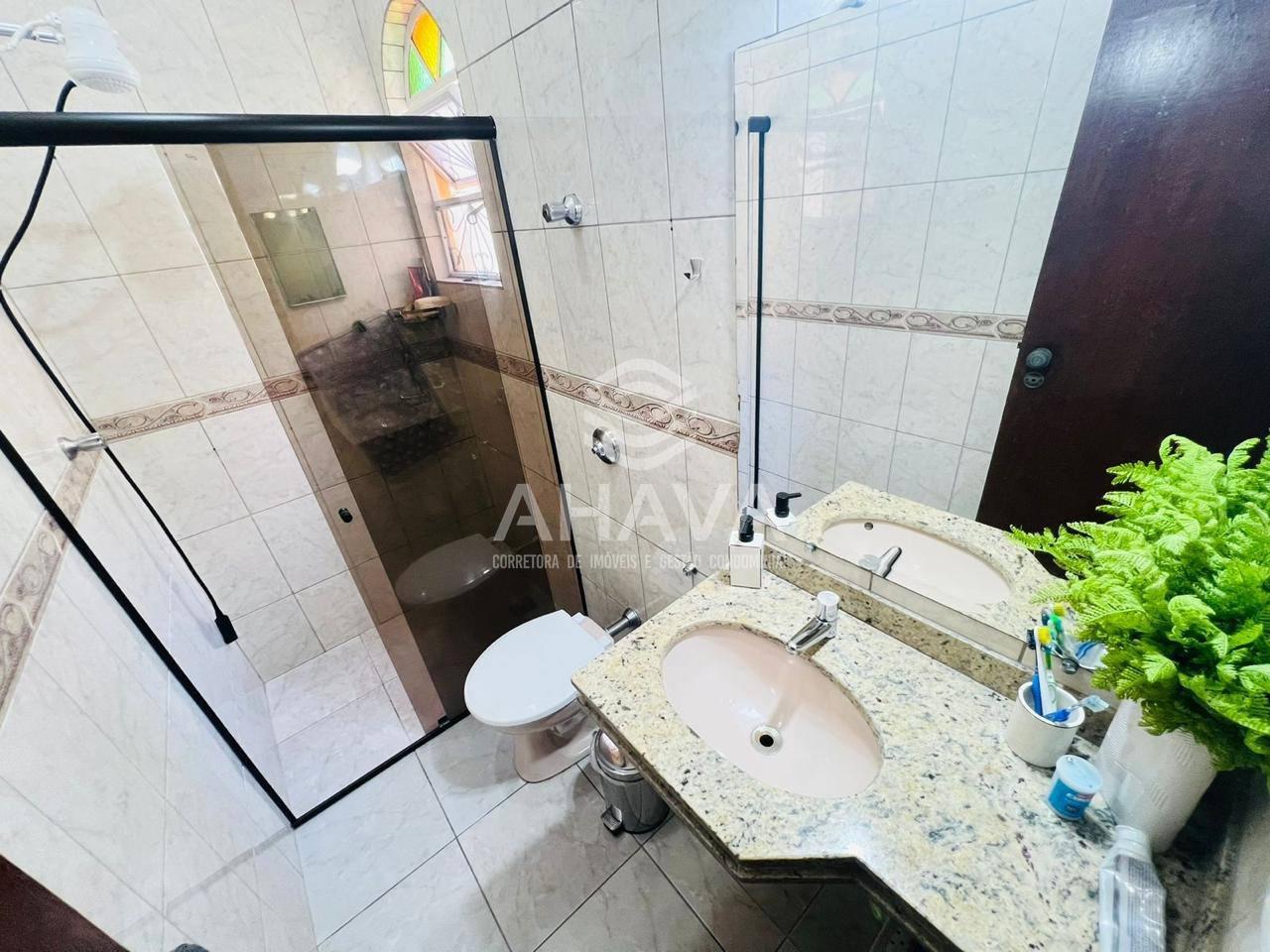 Banheiro da Suíte com bancada em granito, espelho e box em blindex;