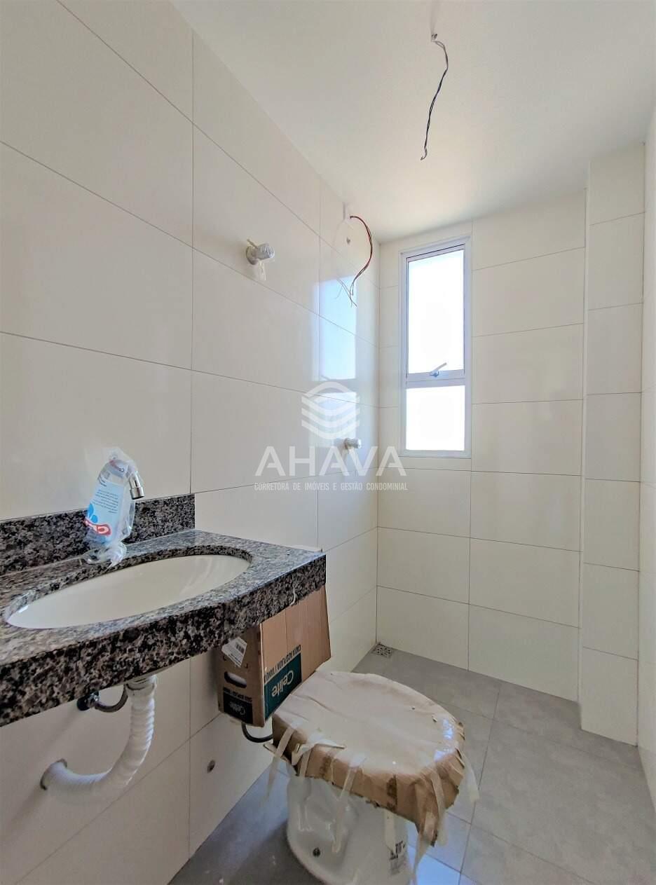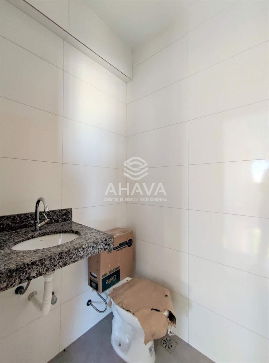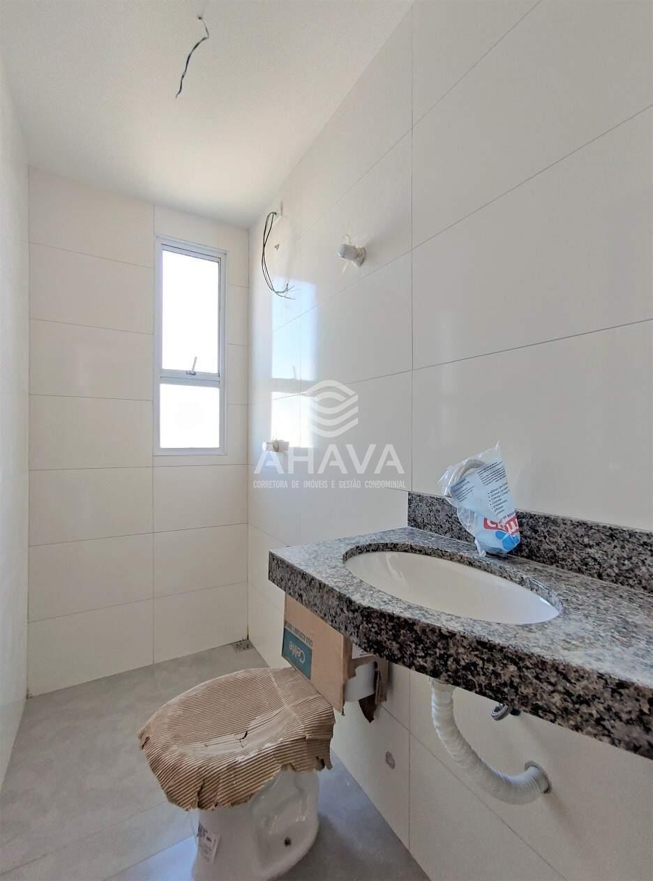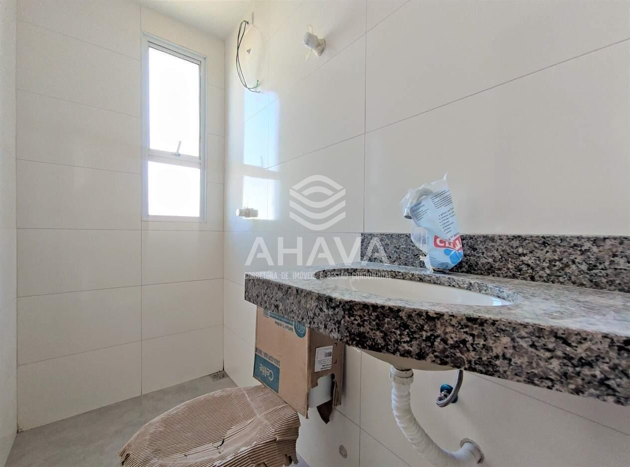 Banheiro da suíte com bancada em granito e cuba da pia embutida;