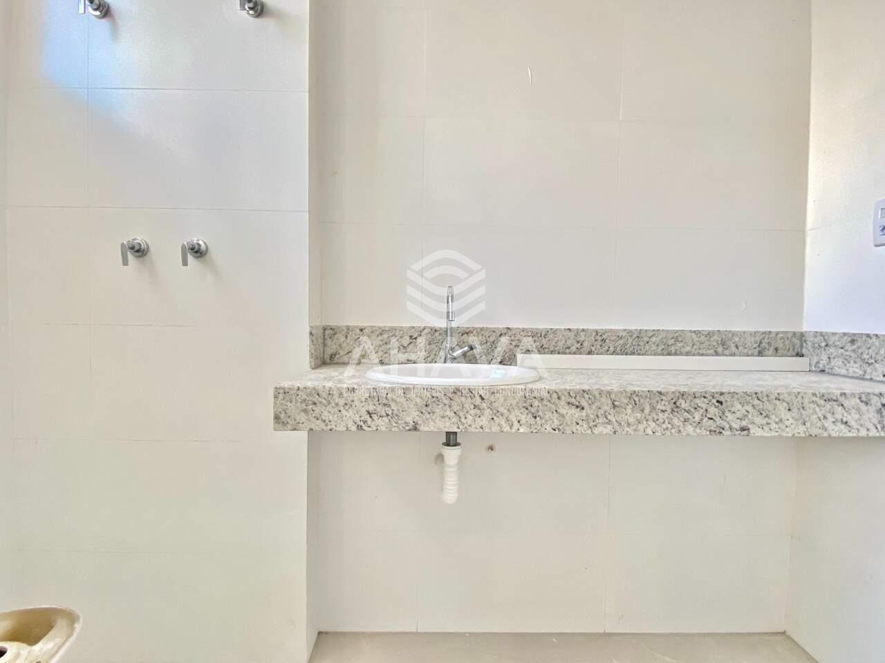 Baheiro da suíte 2 com bancada em mármore, cuba da pia embutida;